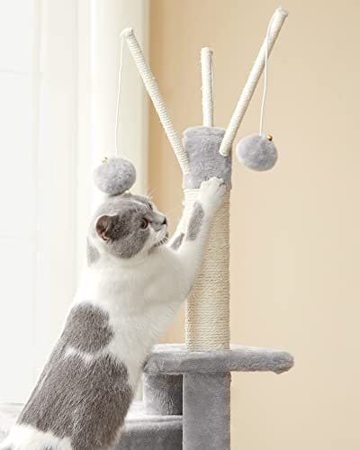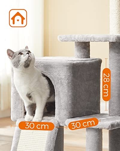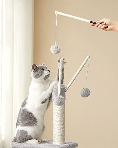 Sikker, stabil, sikker: Natural Sisal for sikkerhed, robust partikelplade og en forstærket base for stabilitet og et anti-tip-kit til sikkerhed-dette kattestårn tilbyder en sikker legeplads for op til 2 katte (maks. 7 kg hver) til Spil