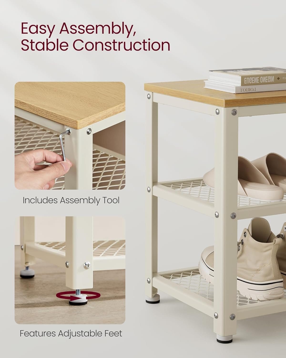 [Fjern dine bekymringer] Ikke god til at samle? Ikke noget problem. Vi har pakket en duo – nummererede dele og letforståelige instruktioner – for at hjælpe dig med at færdiggøre det trin for trin. Bare følg dem, og du vil beundre din nye skobænk, før du ved af det.