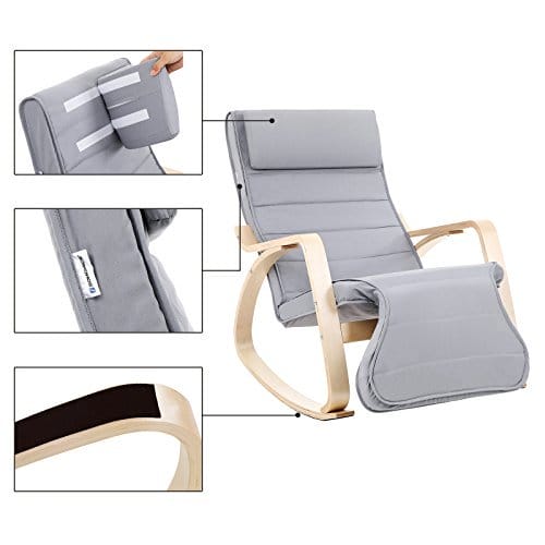 Gør det lettere at sætte sig ned og stige: fodstøtten er ikke kun 5 justerbare positioner, men også praktisk taget indad. Sid blot på denne gyngestol og sving forsigtigt frem og tilbage