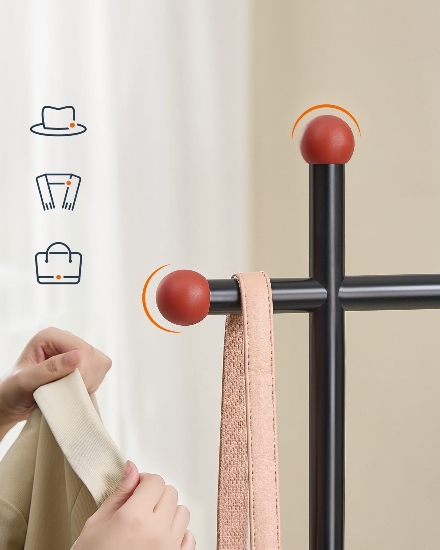 【INNOVATIVE STYLE】Featuring a design inspired by matchsticks, this clothes rail seamlessly blends aesthetics with practicality, adding a warm touch to your space. The hooks offer a convenient spot for hanging hats and bags