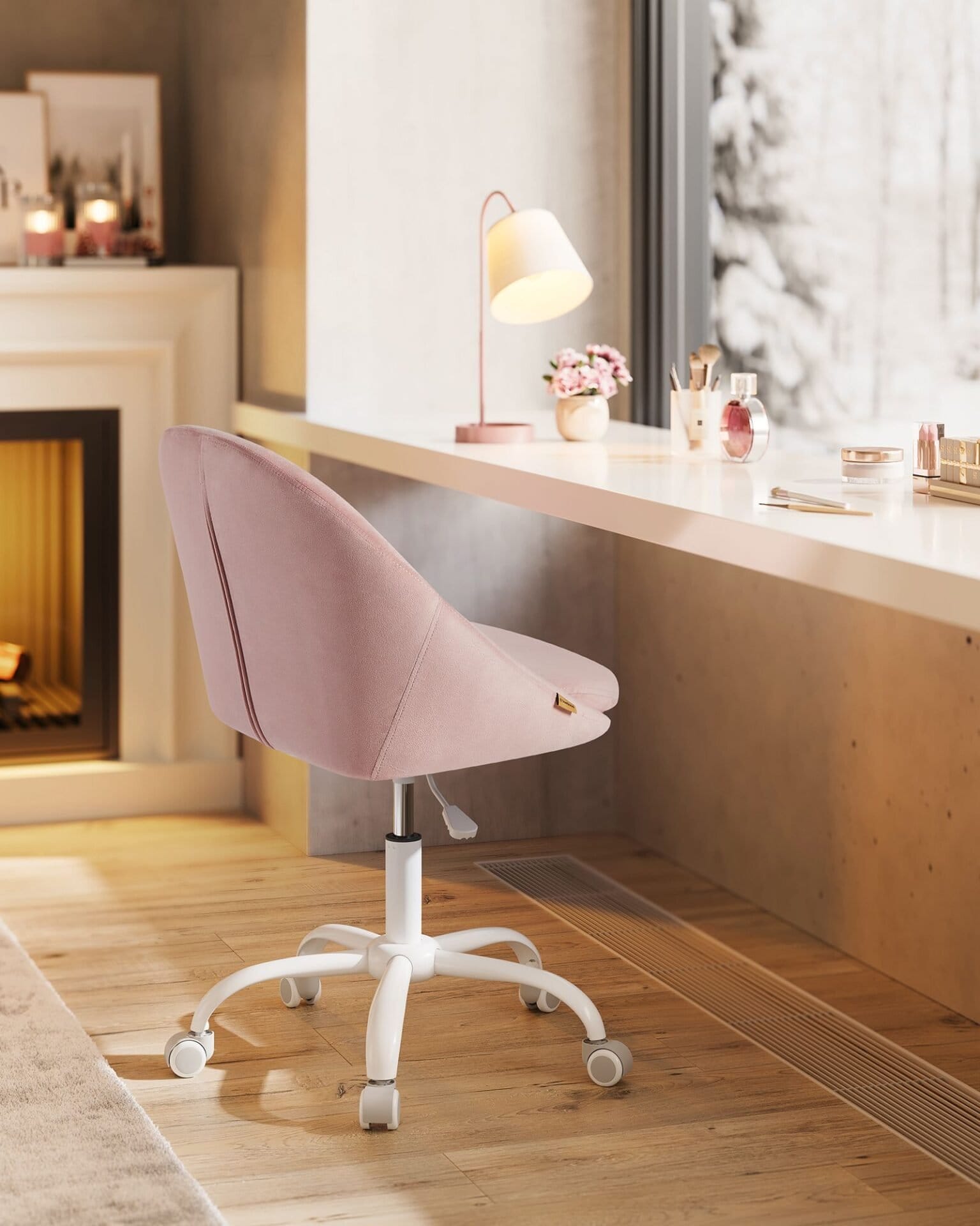 [Stylish & Versatile] With the chic look and simple geometric lines, this swivel chair gives your room a unique charm. You can use it for work, study or make up