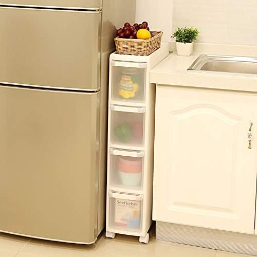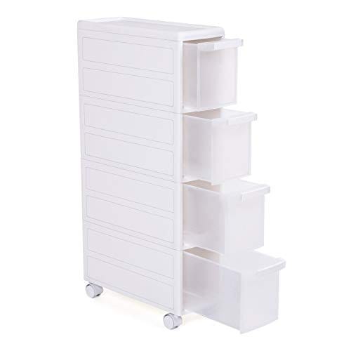 Rumbesparende – På grund af det smalle design, 18 x 46 x 84,5 cm (w x d x h), kan dette skab let passe ind i små hjørner i din stue, badeværelse eller køkkenet; 4 dybe skuffer og øverste hylde holder alt pænt organiseret