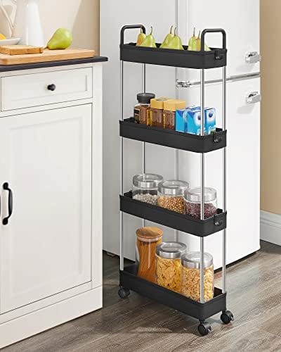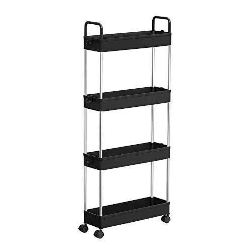 Songmics Storage Trolley, Slim Trolley, 4-lags køkkenopbevaringsvogn, smal gap badeværelse vogn med hjul og håndtag, 40 x 13 x 93 cm, sort KSC018B01
