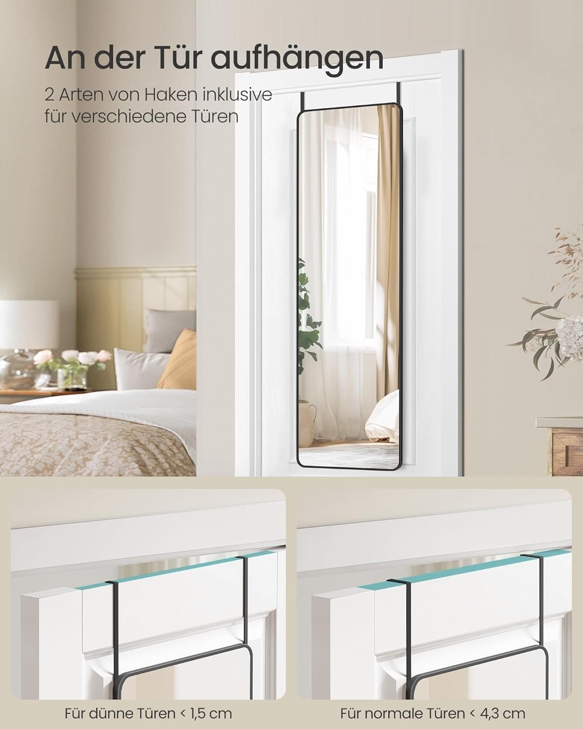 Bitte befestigen Sie den Spiegel nach der Anleitung an einer Wand oder an einer Tür.