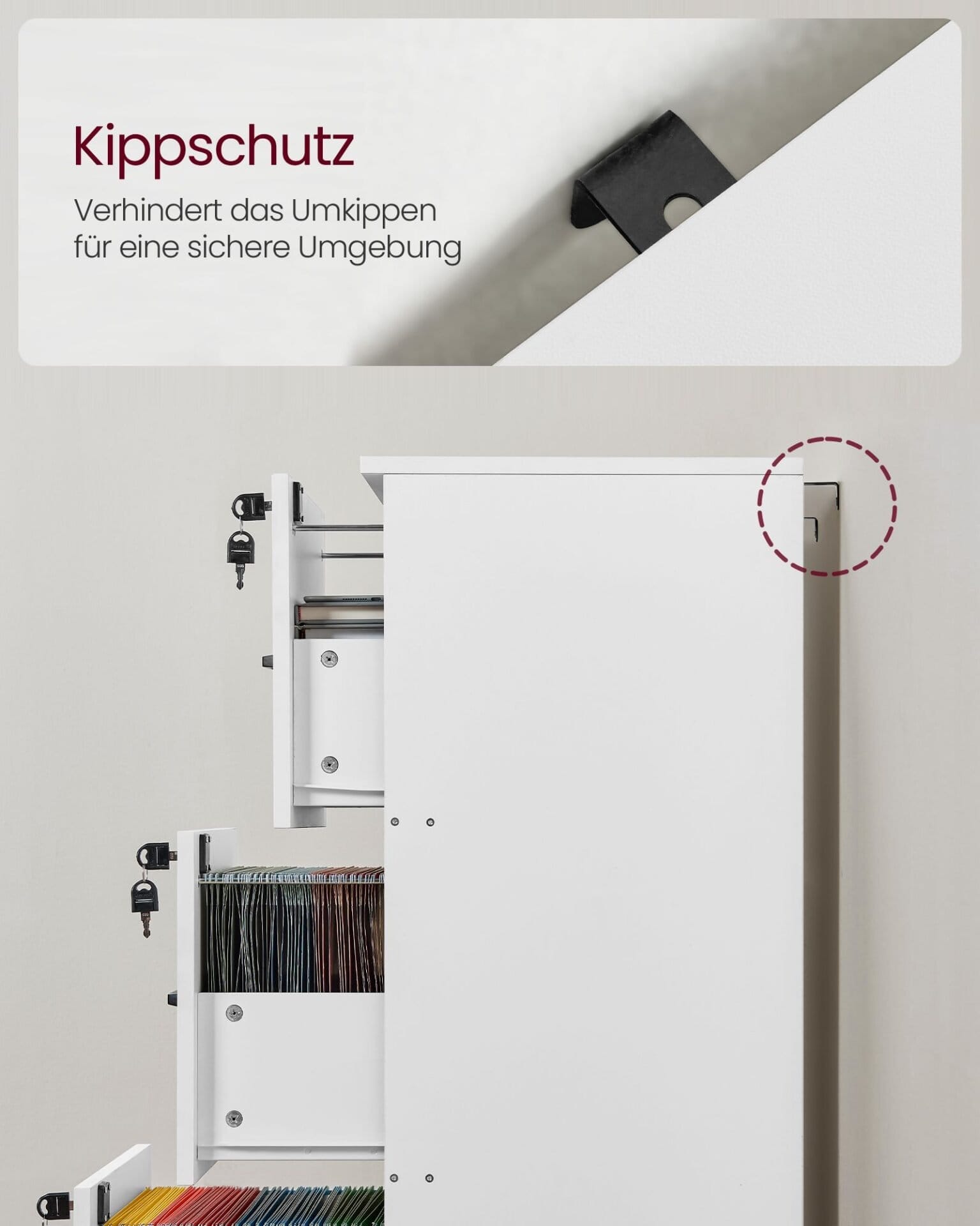 [Safe Files, Safe Home] The 3 drawers can be locked separately to keep your important documents safe. An anti-tilt kit is included to secure the box to the wall for added safety