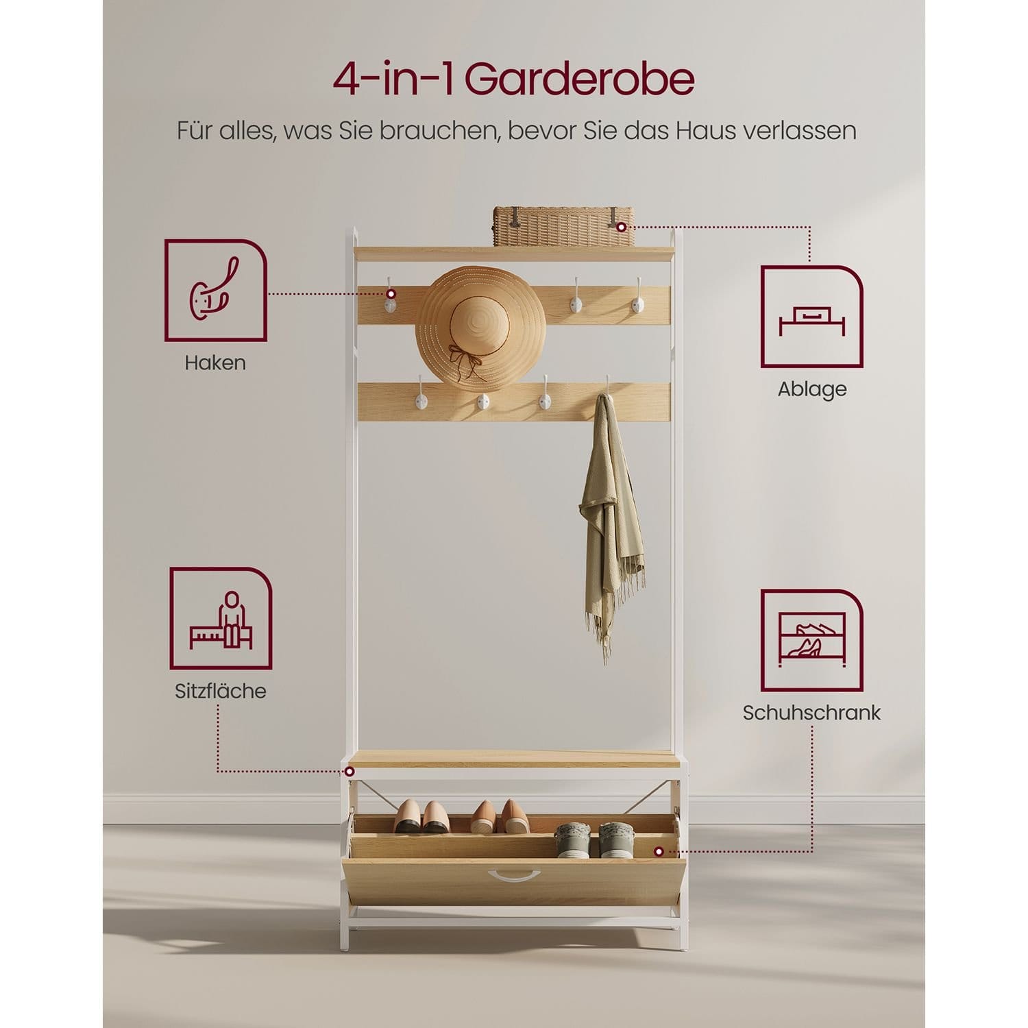 [Multifunctional Wardrobe] 9 hooks, shoe cabinet with folding compartment, 85 cm long bench, top shelf – the wardrobe meets different needs: hang clothes, store shoes, sit down while putting on shoes and storing items